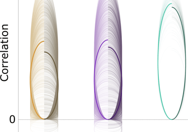 This is an alternative layout for datasets in which a small number of distributions have to be shown and aesthetics are important (i.e. always :D). A single value is represented by the endpoint of a thin arc; the bold ones are distribution averages. Shades mean different conditions.