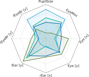 As another alternative for bar plots, in this case when we have multiple categories and variables, we can opt for a radar plot, split by category.